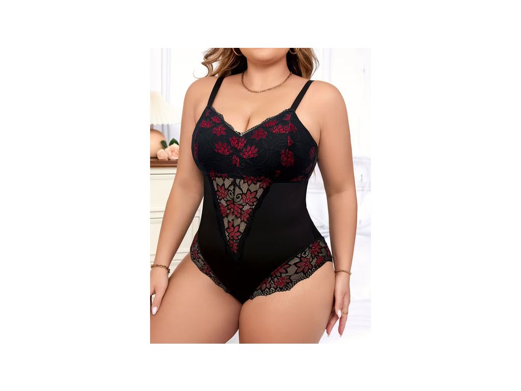 Heboučké body s květinovou červenou krajkou pro vášnivé večery...