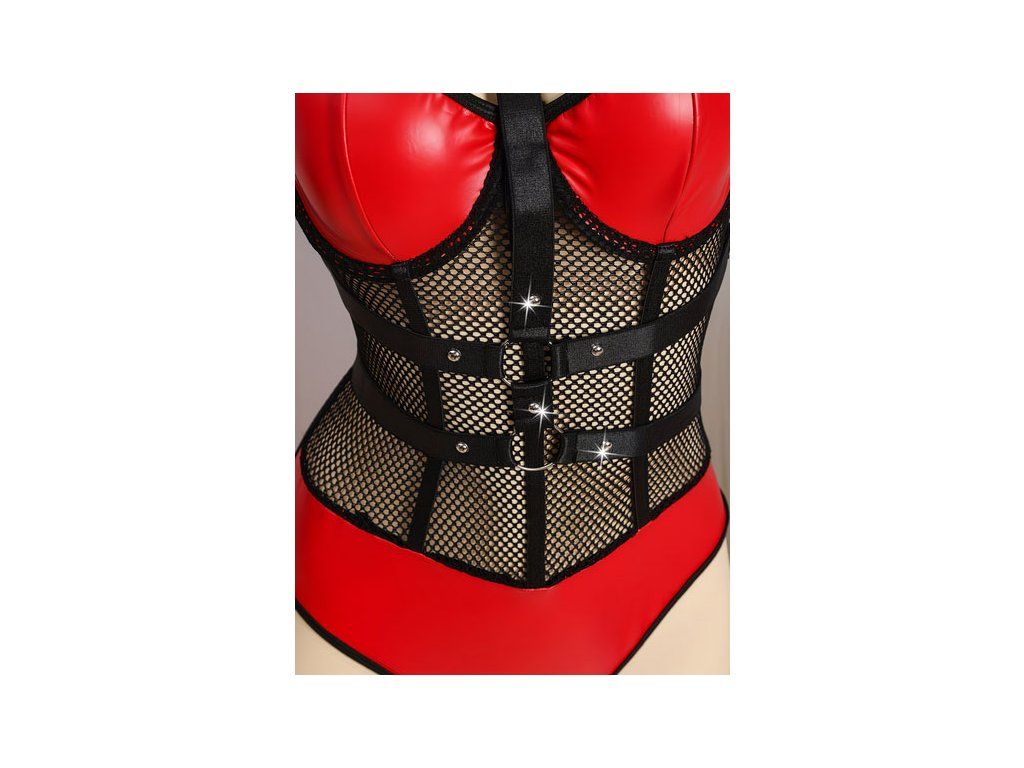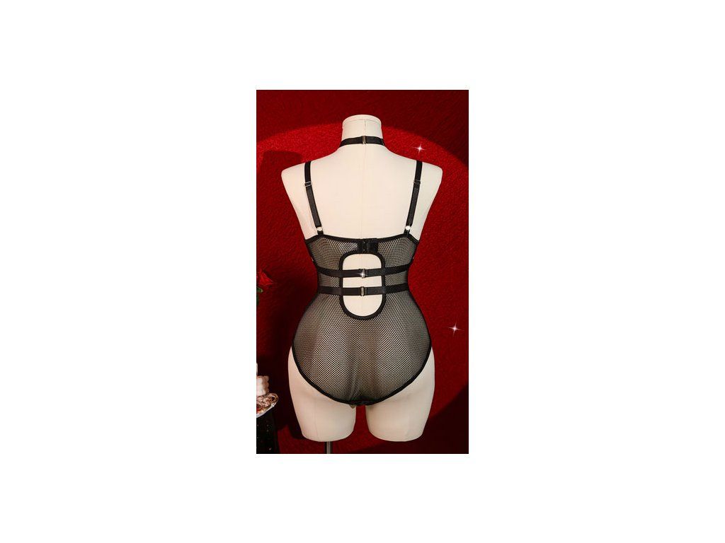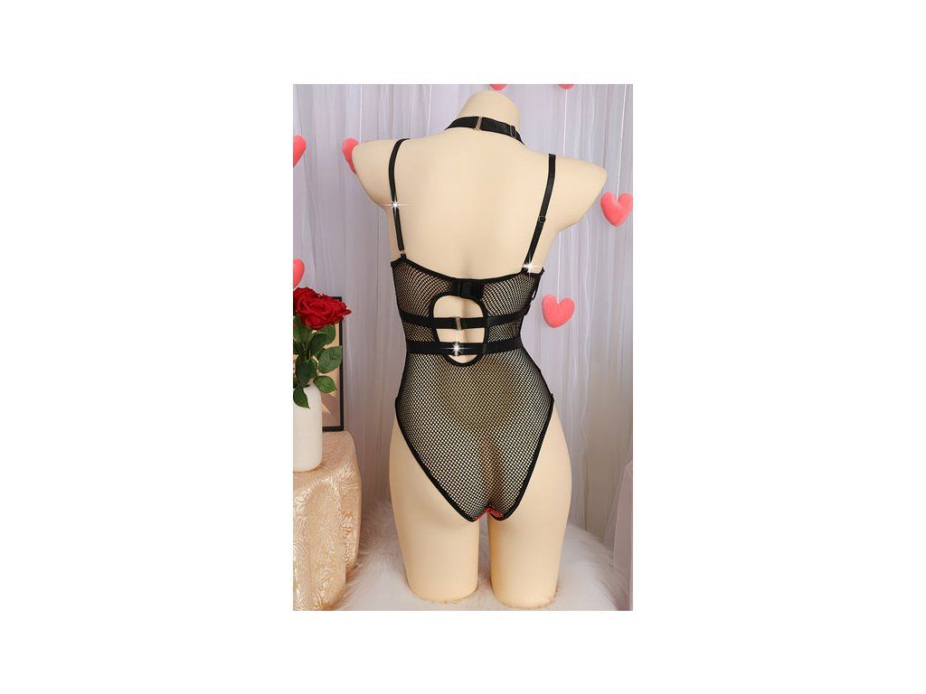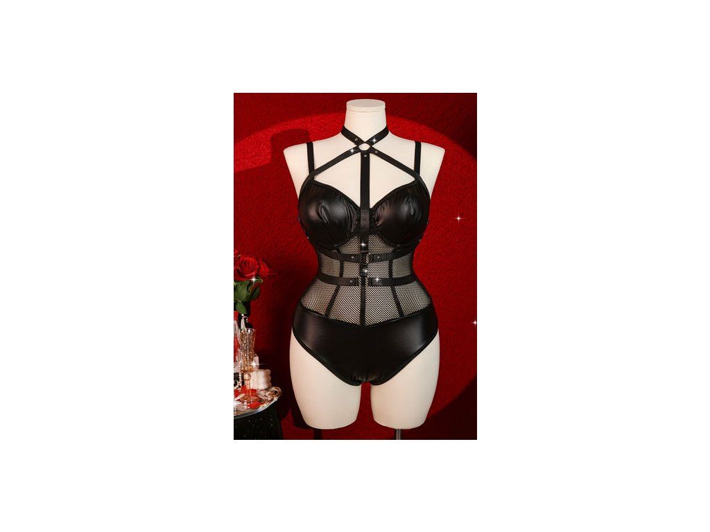 - Erotické body s kvalitní imitací kůže v kombinaci s jemnou síťovinou.