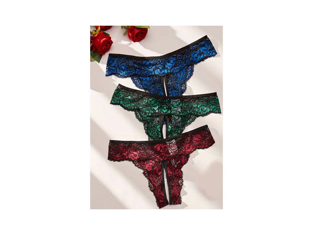 Krajkové kalhotky s otevřeným rozkrokem.