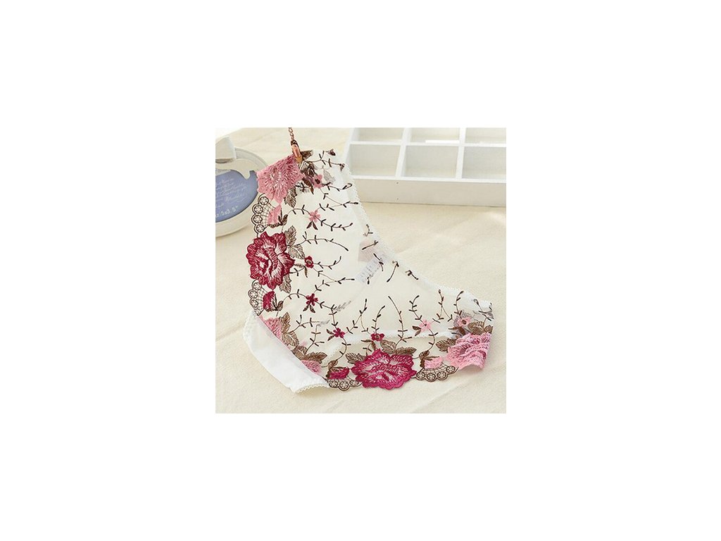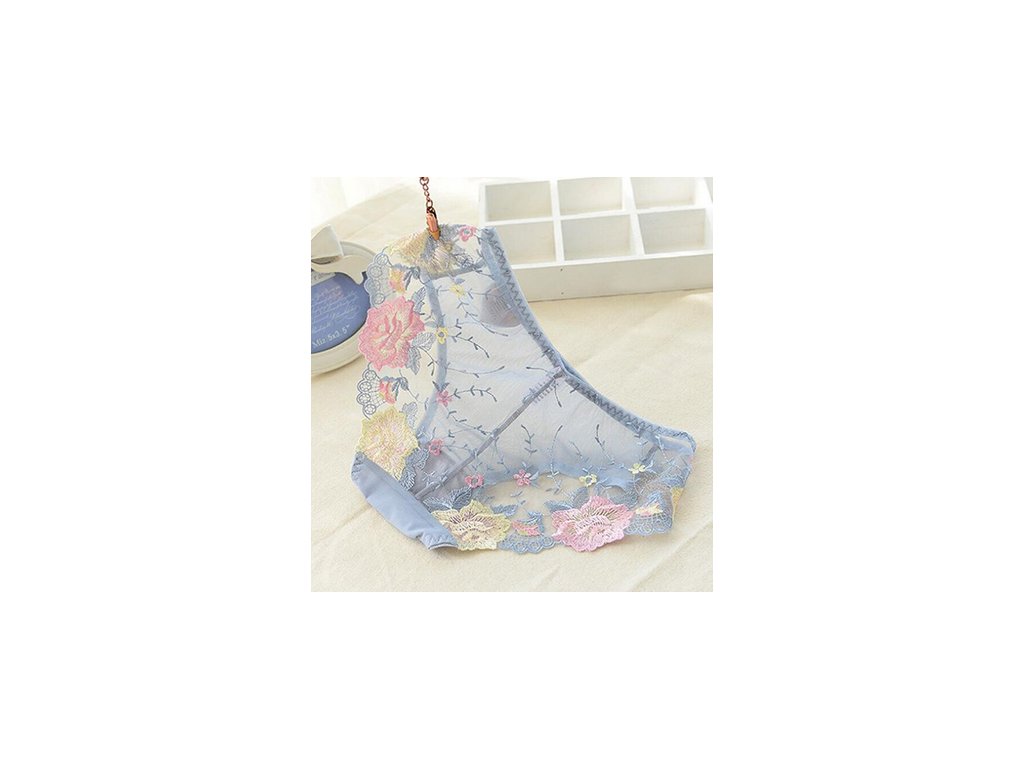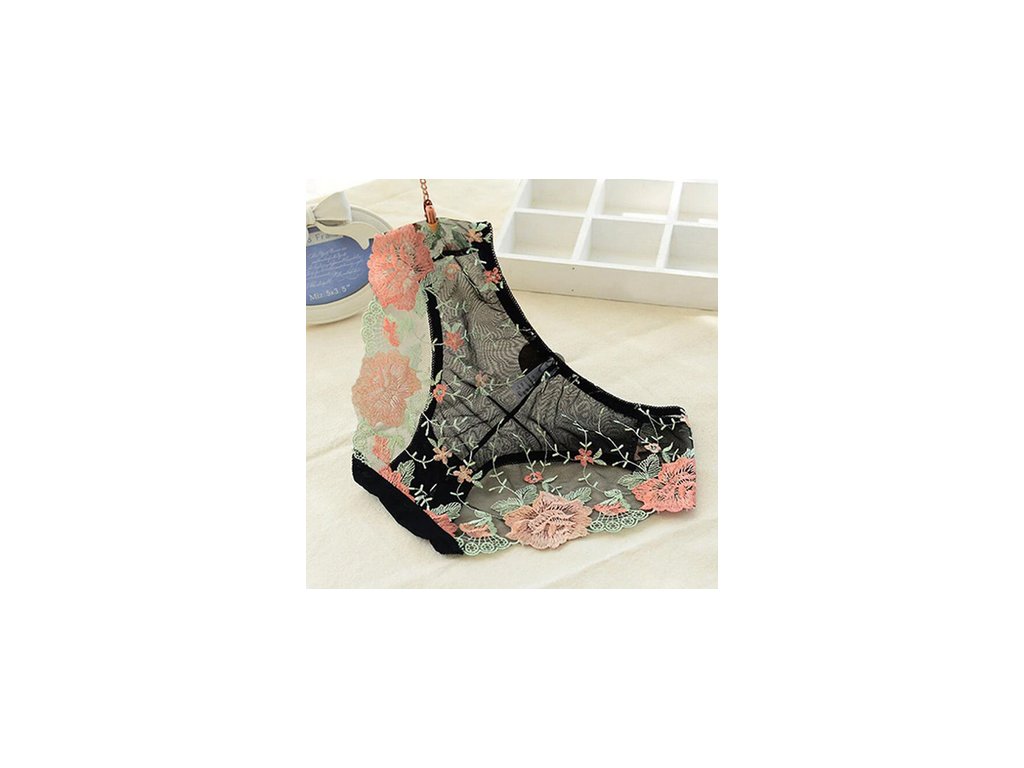 Průhledké tylové kalhotky s krásně barevnou krajkou na zadečku.