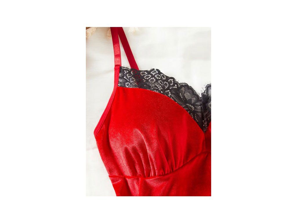 Sexy košilka s krajkou pro milovníky lesklého sametu se zvýrazněním pasem pro zeštíhlující efekt.