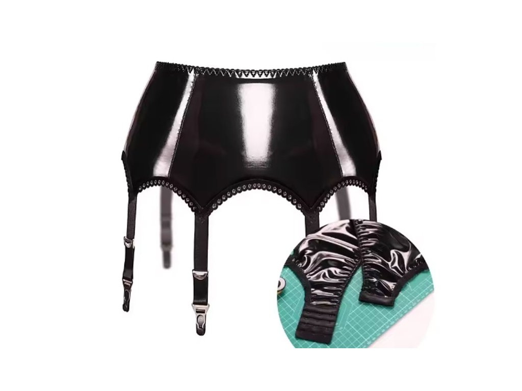 Sexy lack podvazkový pás se šesti kovovými přezkami. Zapínaní na 4 řad háčků.