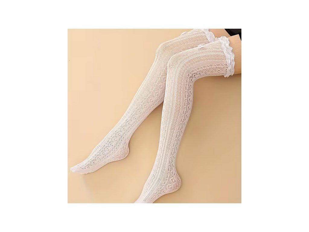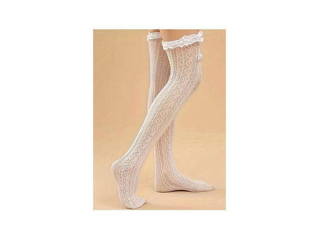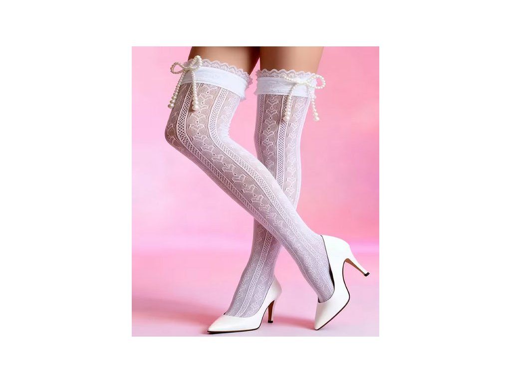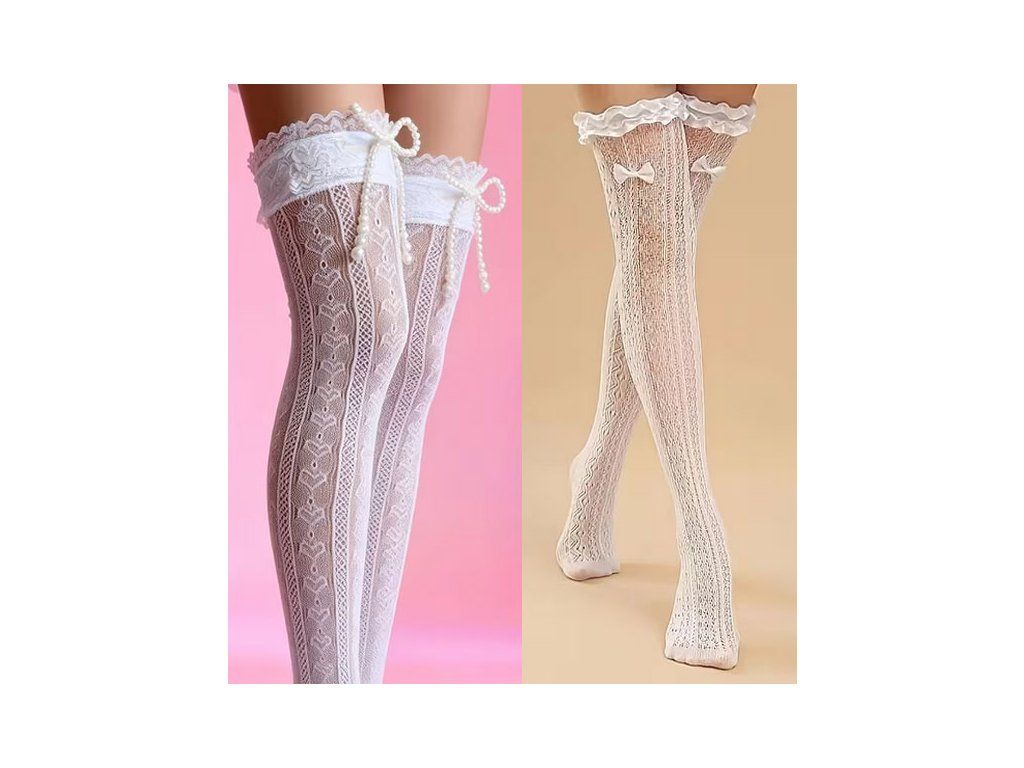 Síťované nadkolenky se vzorem srdíček. Varianta s mašličkou nebo s mašličkou z korálků . Skvělé např. pro kostým nevinné školačky nebo nevěsty :-)